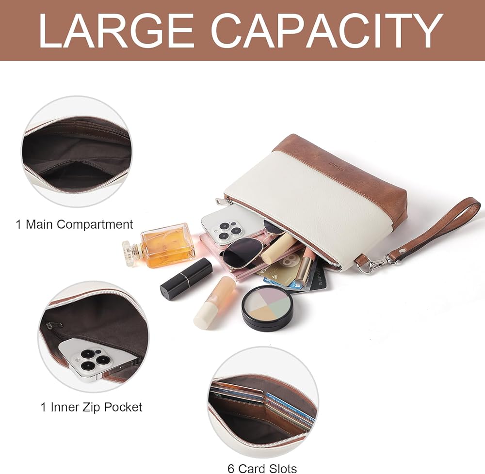 Bveyzi Genuine Leather Wristlet Purses for Women, Envelope Clutch Wallet Small Crossbody Bags for Dressy Evening