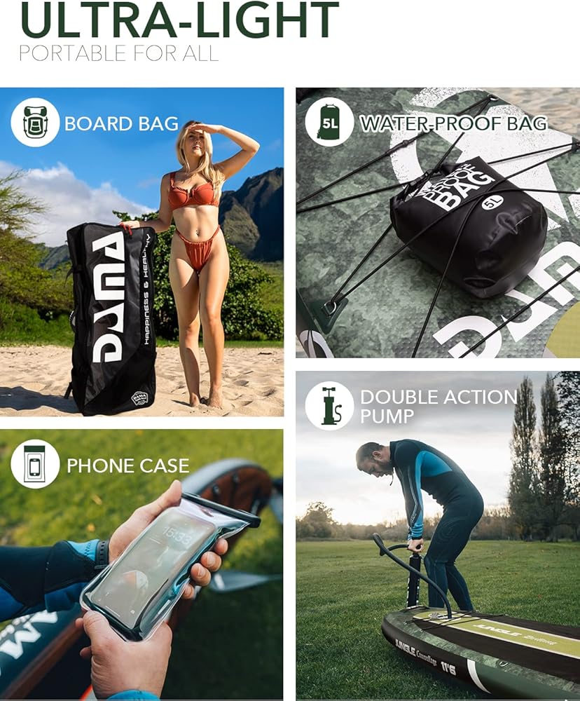 【خدمة العملاء كخدمة إلهية】 لوح التجديف القابل للنفخ من داما هو لوح متعدد الوظائف في جميع الأنحاء، بسعة وزن 400 رطل، وهو مناسب لليوجا وصيد الأسماك وركوب الأمواج أو حمل الأطفال والحيوانات الأليفة معًا في المياه العذبة والمالحة. 10 دقائق للنفخ و5 دقائق للتفريغ، لوح التجديف القابل للنفخ هذا مريح جدًا في التركيب. سيحدد الوقت مدى جودة DAMA من حيث الجودة والمرح!