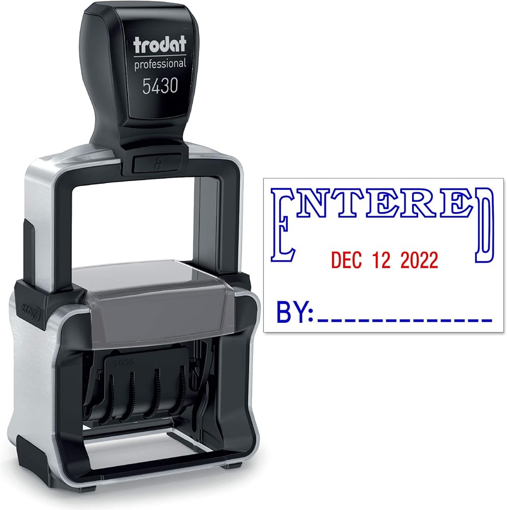 Trodat 5430 Professional Self-Inking Date Stamp with Entered - Blue/Red 2 Color Ink