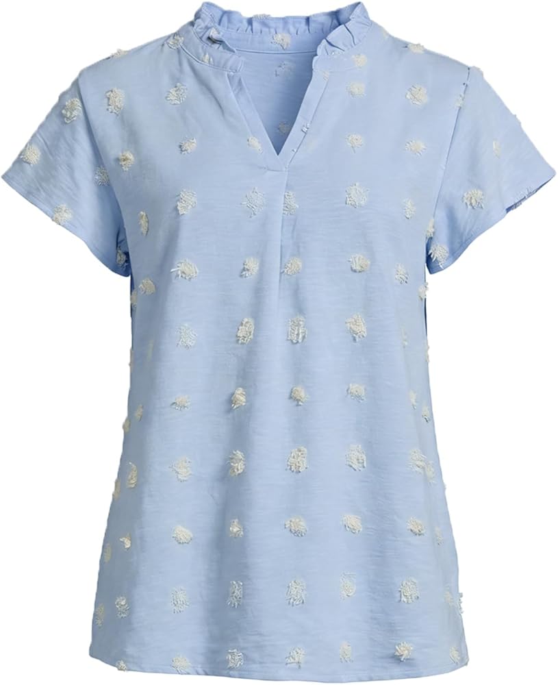 Features: Girls tunic tops with v neck, short sleeve, solid color, swiss dot. Super cute girls shirt, this girl shirts is pretty fashion and trendy, also casual loose style.