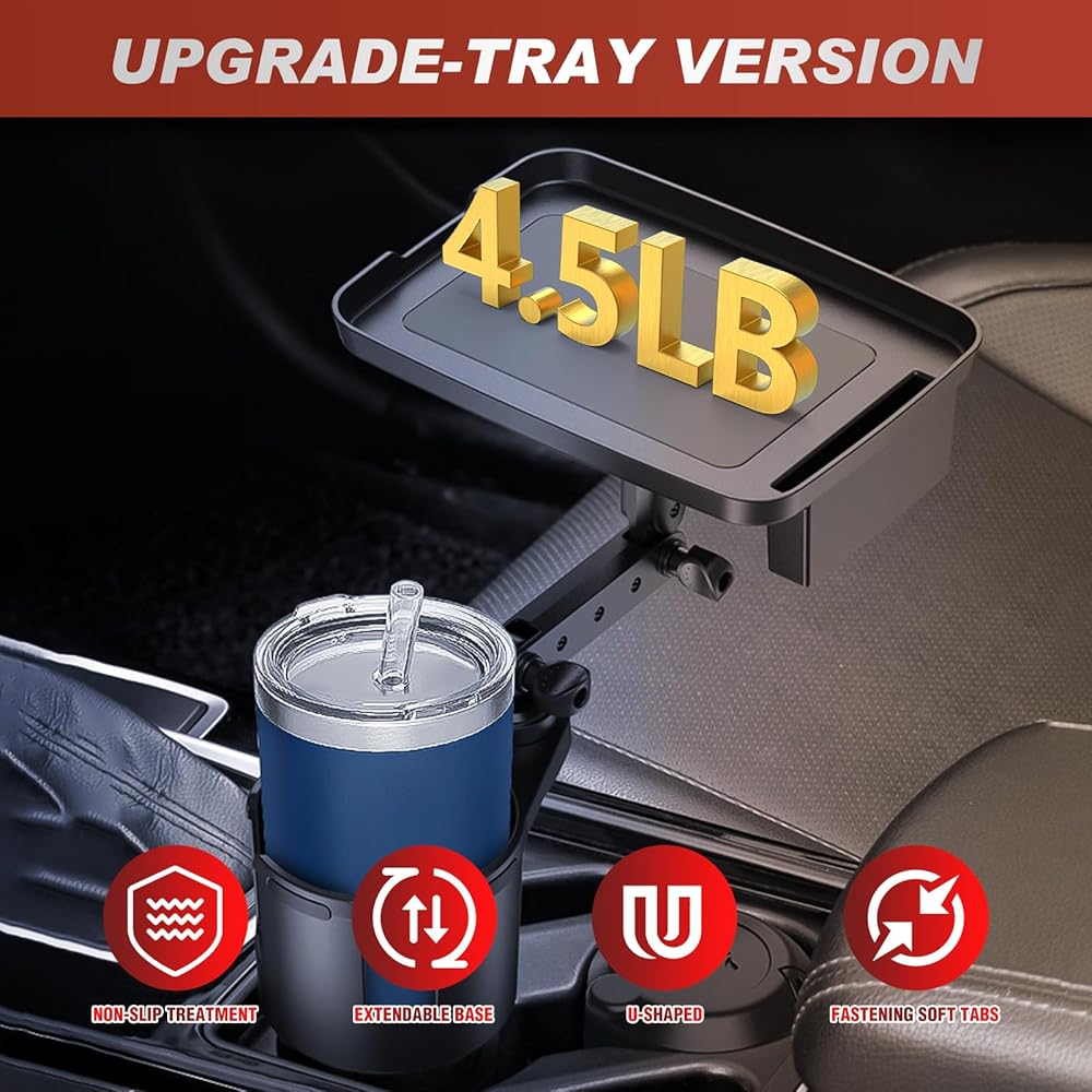 Frokom Cup Holder Expander for Car,Upgraded Car Cup Holder Expander Adapter with Offset Adjustable Base and 8" Tray, Fit Most Large Bottles and Mugs-Yeti Ramblers 14/24/36/46oz, Hydro Flasks 32/40oz