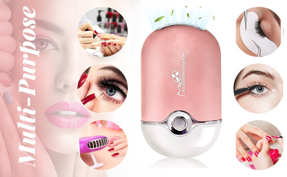 GreenLife® USB Rechargeable Portable Mini Fan Cooling Fan Bladeless Handheld Eyelash dryer Mini Handheld Fan Air Conditioning Blower for Eyelash Extension (Rose)