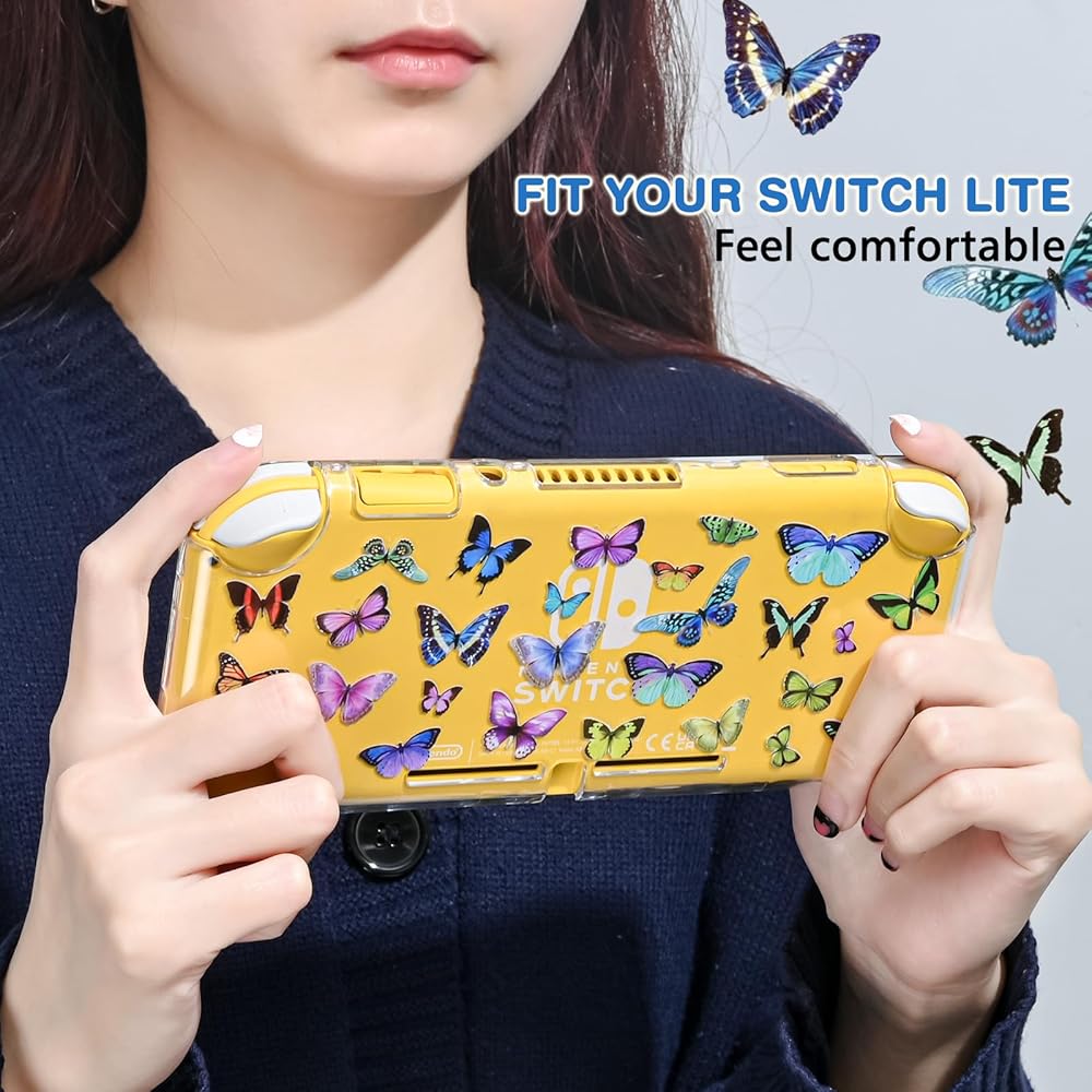DLseego Butterfly Clear Protective Case for Switch Lite 2019 Version, Dockable Hard Shell Cute Anti-Scratch All-Round Protection Cover Case for Games Accessories - Colourful