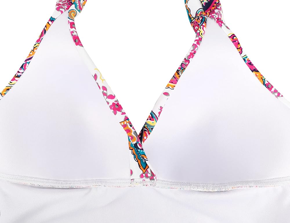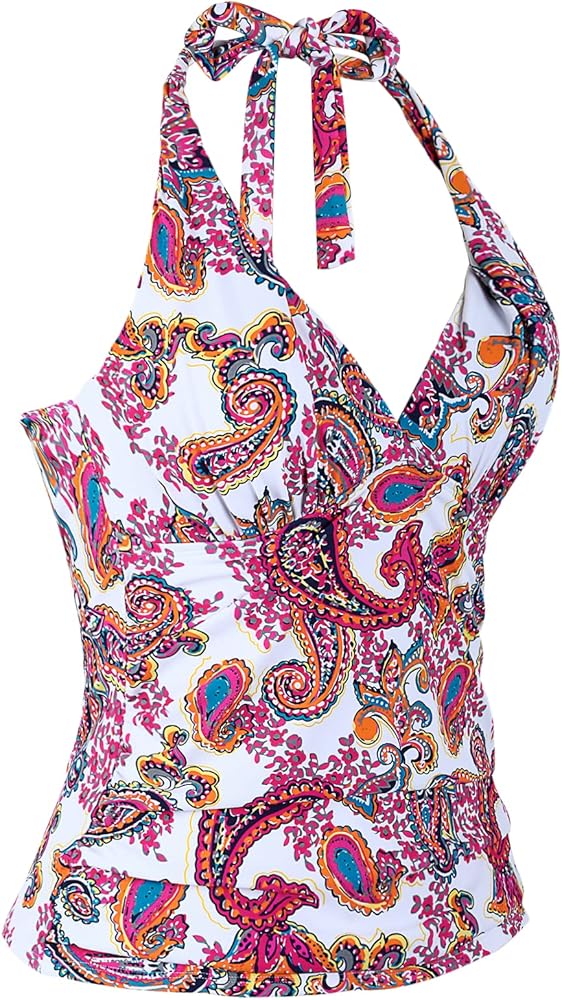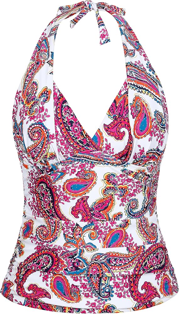 - Halter tankini top can conceal your tummy, looks slim and cute,easy to wear,tummy control swim top front lining perfect fit with every wear.