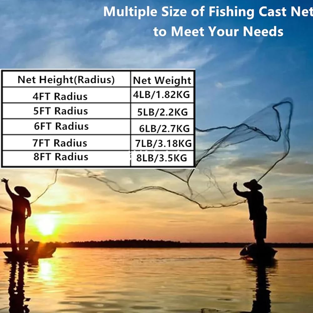 [Ideal for Bait Fishing] High quality craftsmanship make this product a must have for any fishermen.The throw net includes a net bag, enjoy your fishing time