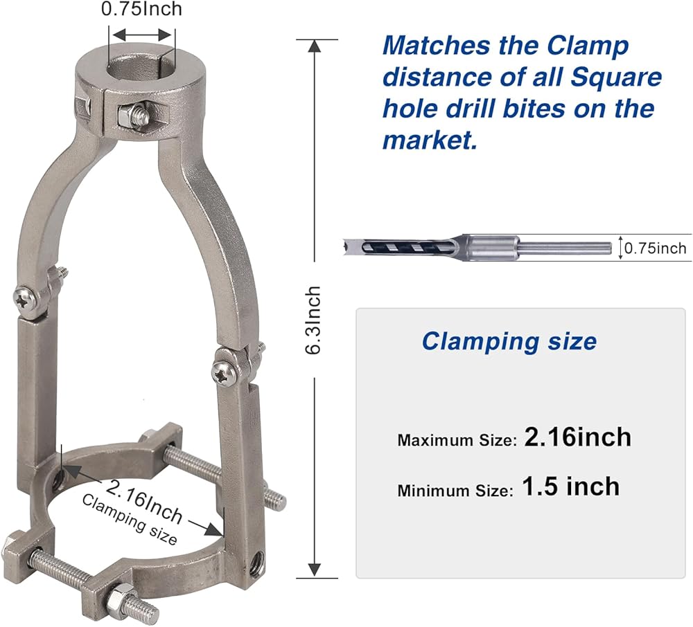 【MORTISING ATTACHMENT FOR DRILL PRESS】- The Square Hole Drill Bit Adapter is suitable for both drill press and hand drill with a clamp diameter between 38 to 55mm/1.5 to 2.2 inch.