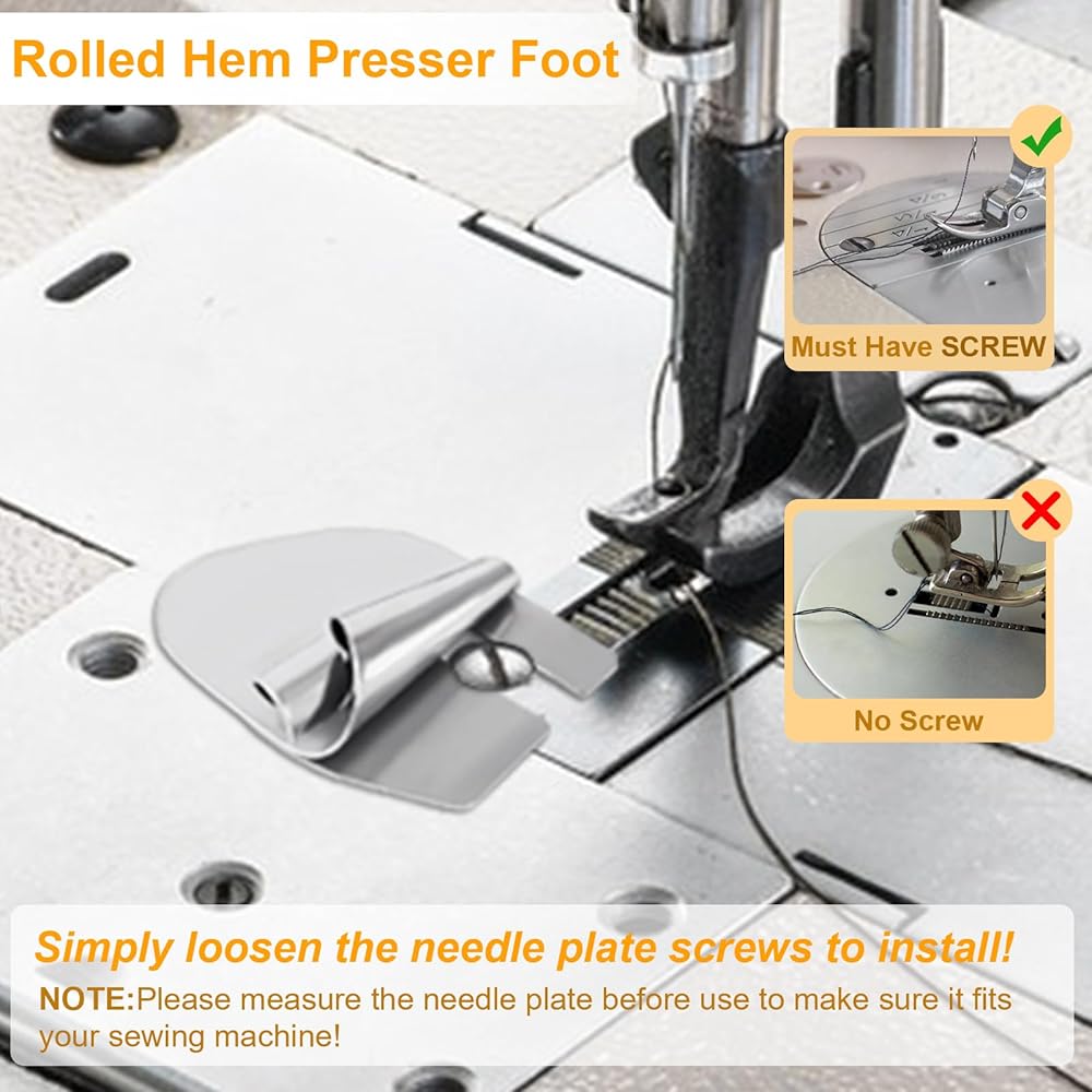 NOTE: This sewing rolled hemmer foot is for Home and Industrial use. To confirm this rolled hemmer foot will work on your sewing machine, make sure there is one hole in the needle plate.