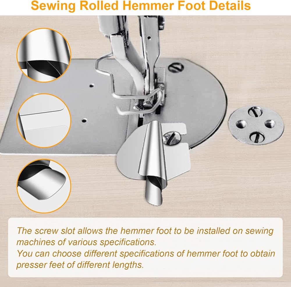 【Premium Material】Our rolled hem presser foot is made of high-quality stainless steel,which is durable and not easy to break. A smooth surface is safe to use.