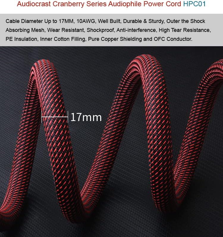 【High-grade materials】- The Audiocrast HPC01 HiFi Power Cable is constructed with high-quality materials to ensure durability and sturdiness. With a cable diameter of 17MM, it is well built and can withstand daily use without any issues.