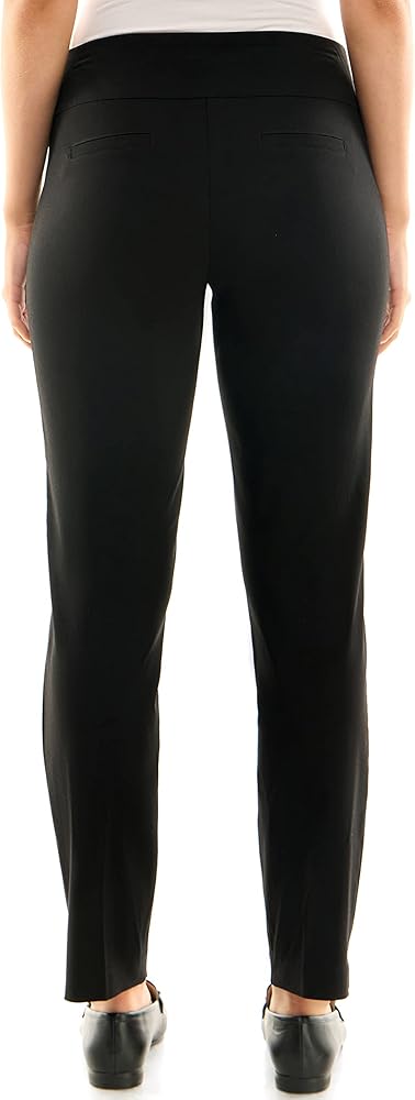 - Pull-on, full-length, flat front panel pants for a perfect flattering fit