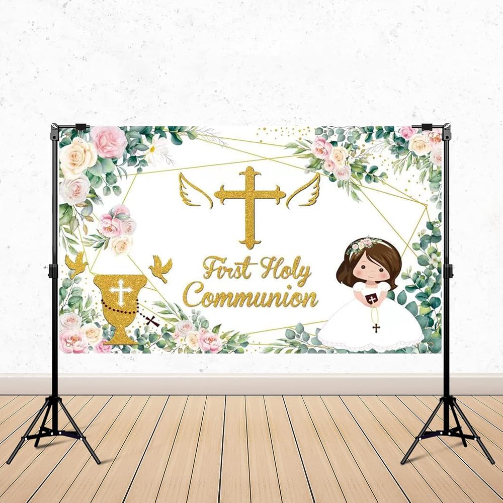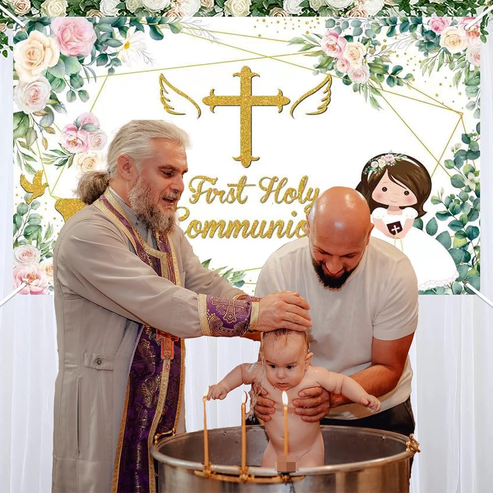 Easy To Use:This first communion banner background is punched at the 4 corners with a long rope,making it easy for you to hang through the copper grommet,save your time and effort.You can hang it on the wall,outside,or anywhere you like.Or just stick the baptism backdrop on the wall.This christening backdrop banner will meet your need for preparing an unforgettable party.