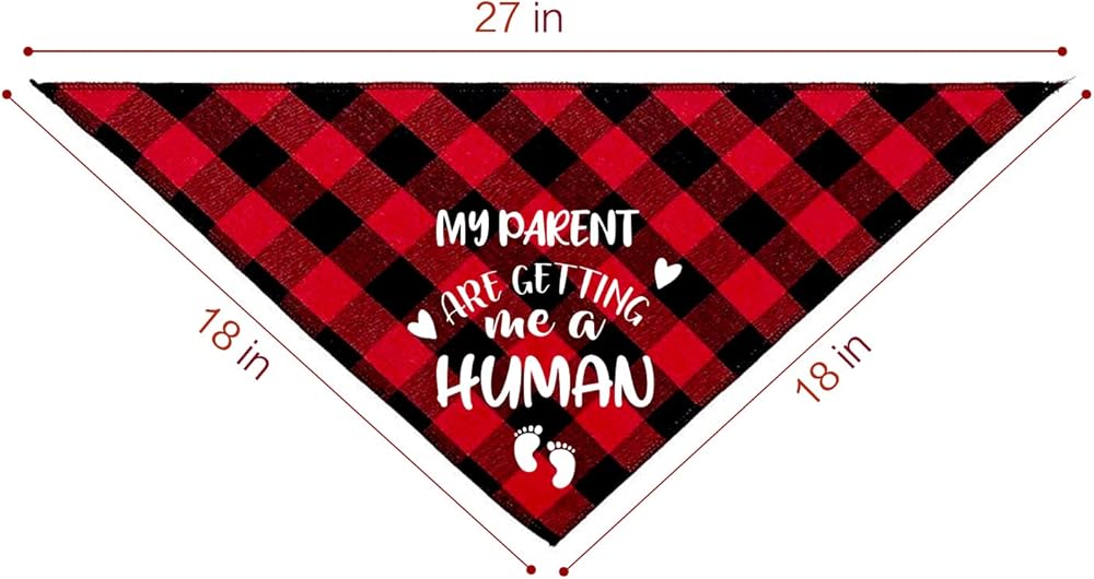 Funny Red Plaid Cotton Pet Dog Bandana, My Parents are Getting me a Human, Pet Dog Pregnancy Announcement Prop Triangle Bibs Accessories for Dog Lovers Owner Gift