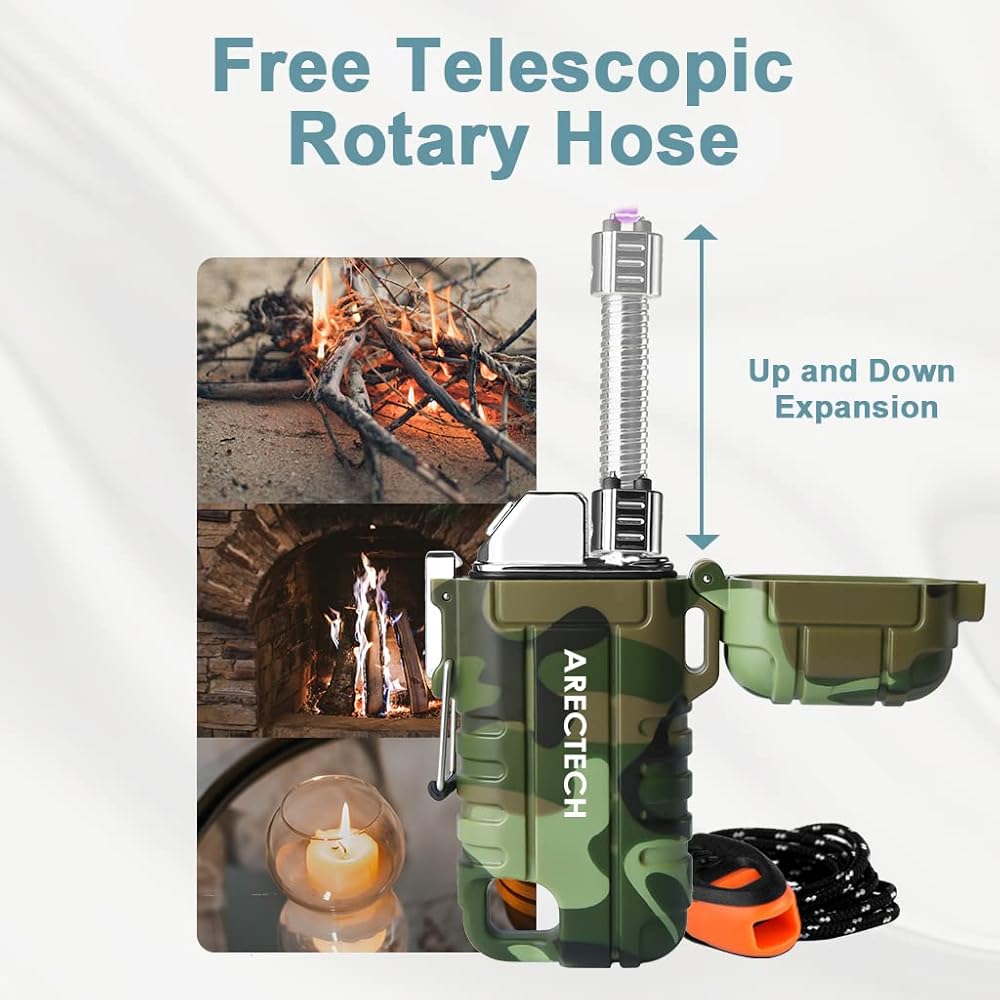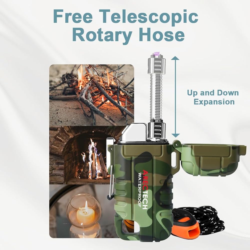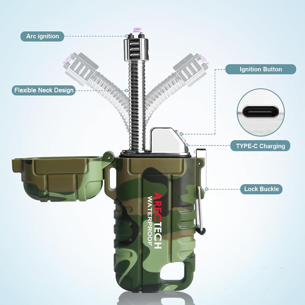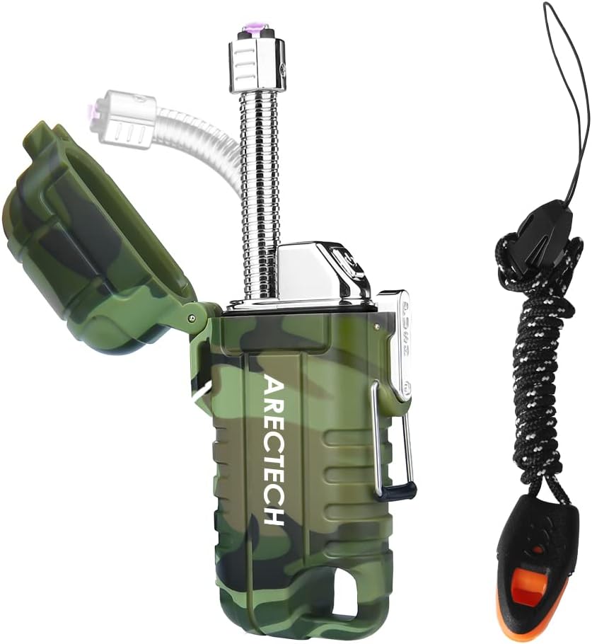 【Weatherproof Arc Lighter】This design makes it work even in heavy winds.Windproof and flameless,usb rechargeable arc lighter. It is a perfect outdoor lighter,camping fire starter tool,an emergency fire starter tool,edc camping survival tactical gear and more.