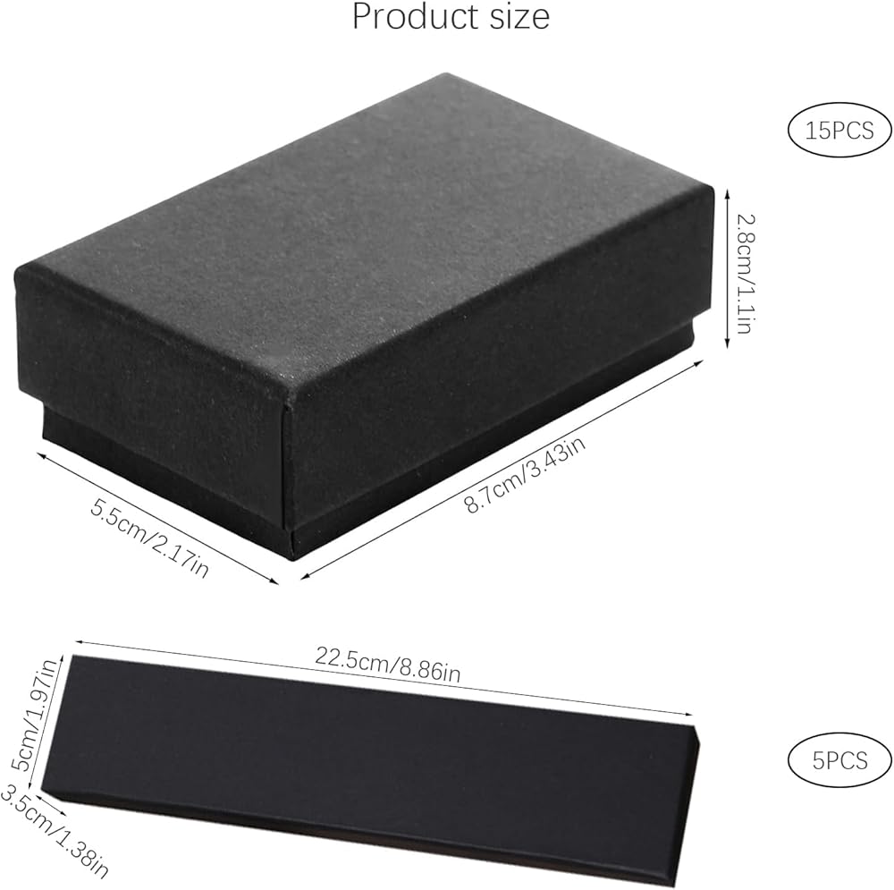 Product Size: 15 pack black jewelry gift box measures 5.5x8.7x2.8cm, 5 pack gift box measures 22.5*5*3.5cm, the right size for your necklace or bracelet.