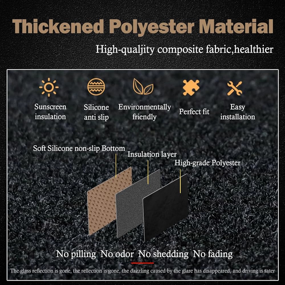 🚗🚗🚗【Customized Design】- Laser cutting, customized car mold opening, perfect fit, and the fine stitching is suitable for the arc of the original car. All defrost and AC vents are pre-cut. The back of dashboard cover mat is made of non-slip silicone particles, also equipped with Velcro, which further strengthens the fixing.