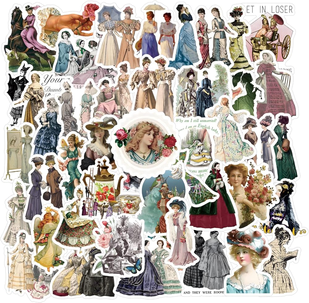 61PCS Victorian Stickers Vintage Girl Stickers Aesthetics Scrapbook Stickers Vinyl Waterproof Stickers for Laptop,Bumper,Skateboard,Water Bottles,Computer,Phone, for Kids,Teens,Adult