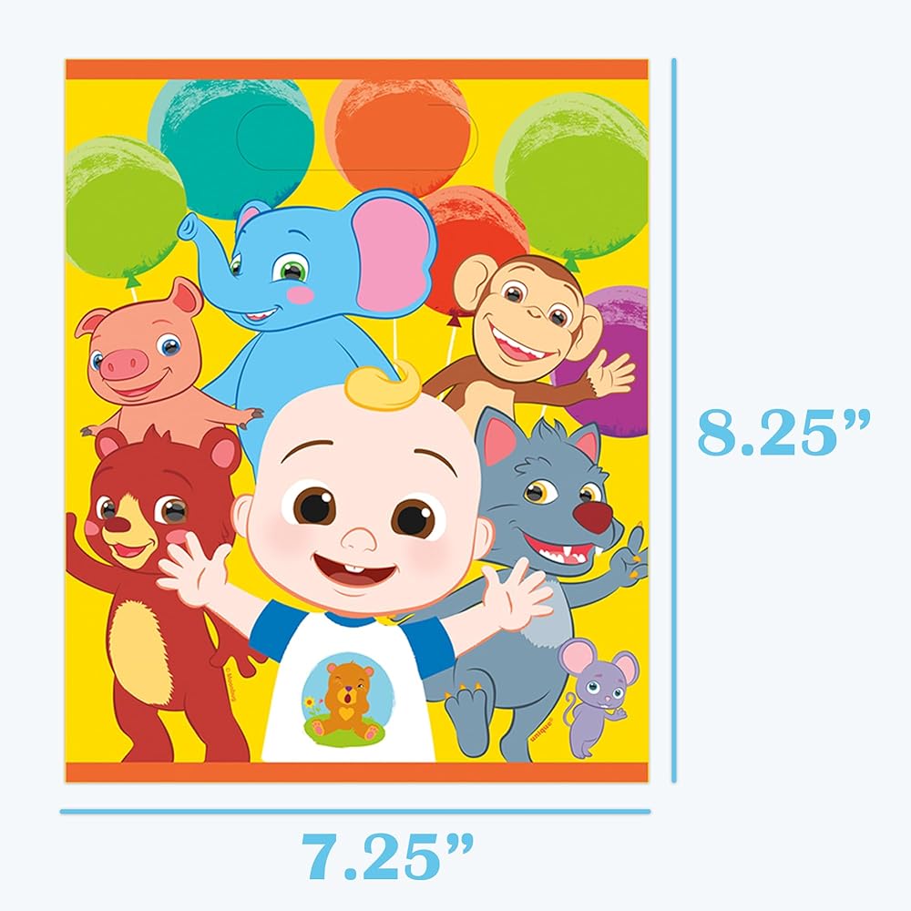 MEASURES: Each of the CoComelon goodie bags measures 7.25 inches wide by 8.25 inches tall.