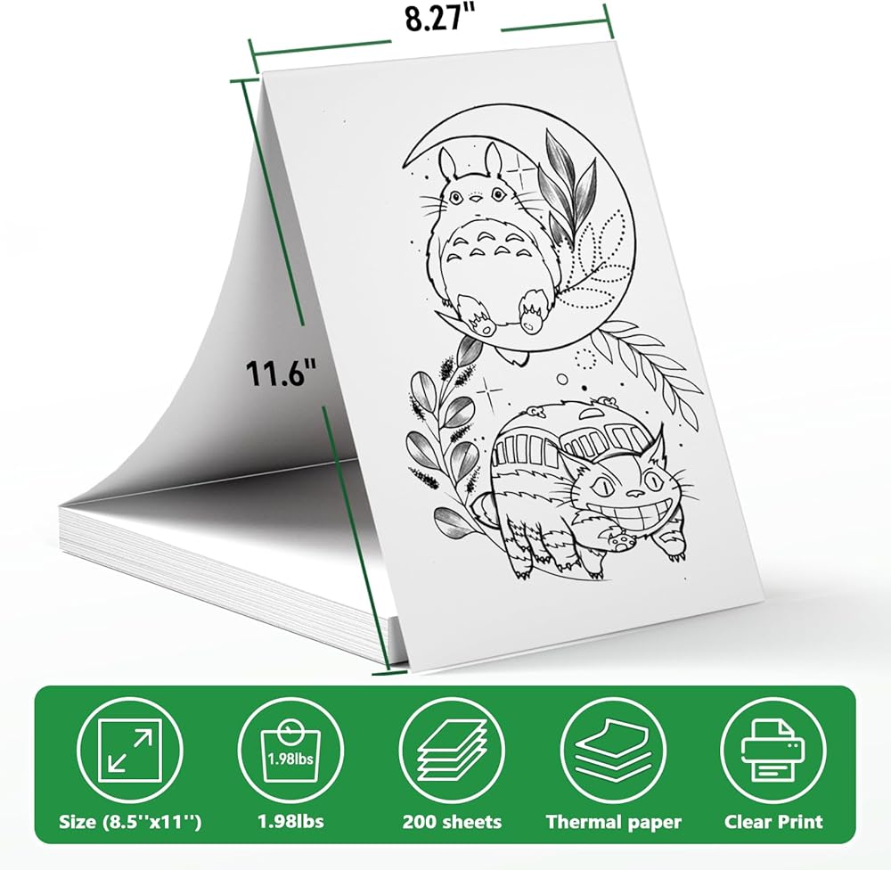 Thermal Printer Paper 8.5 x 11 Inch - Betife Continuous Multipurpose Advanced US Letter Thermal Printing Paper for Brother PJ762/PJ763MFi, Phomemo M08F, HPRT MT800/800Q Printers (200 Sheets)