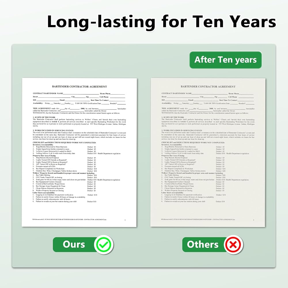 【Jam-free & Fade-free】With advanced manufacturing process, you can print without worrying about paper jams and extend the display time of thermal paper ink up to 10 years (stored in a dark and dry place). It is the best choice for your thermal printing paper.