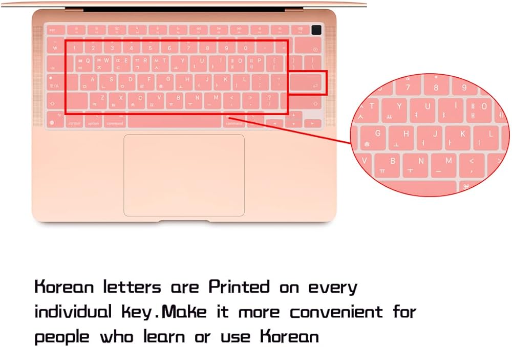 Ultra Thin Korean Language Silicone Keyboard Cover Skin for Newest MacBook Air 13.3" 13 inch 2020 with Apple M1 Processor (Model A2337 A2179) Touch ID Accessories Protector-Rose Gold
