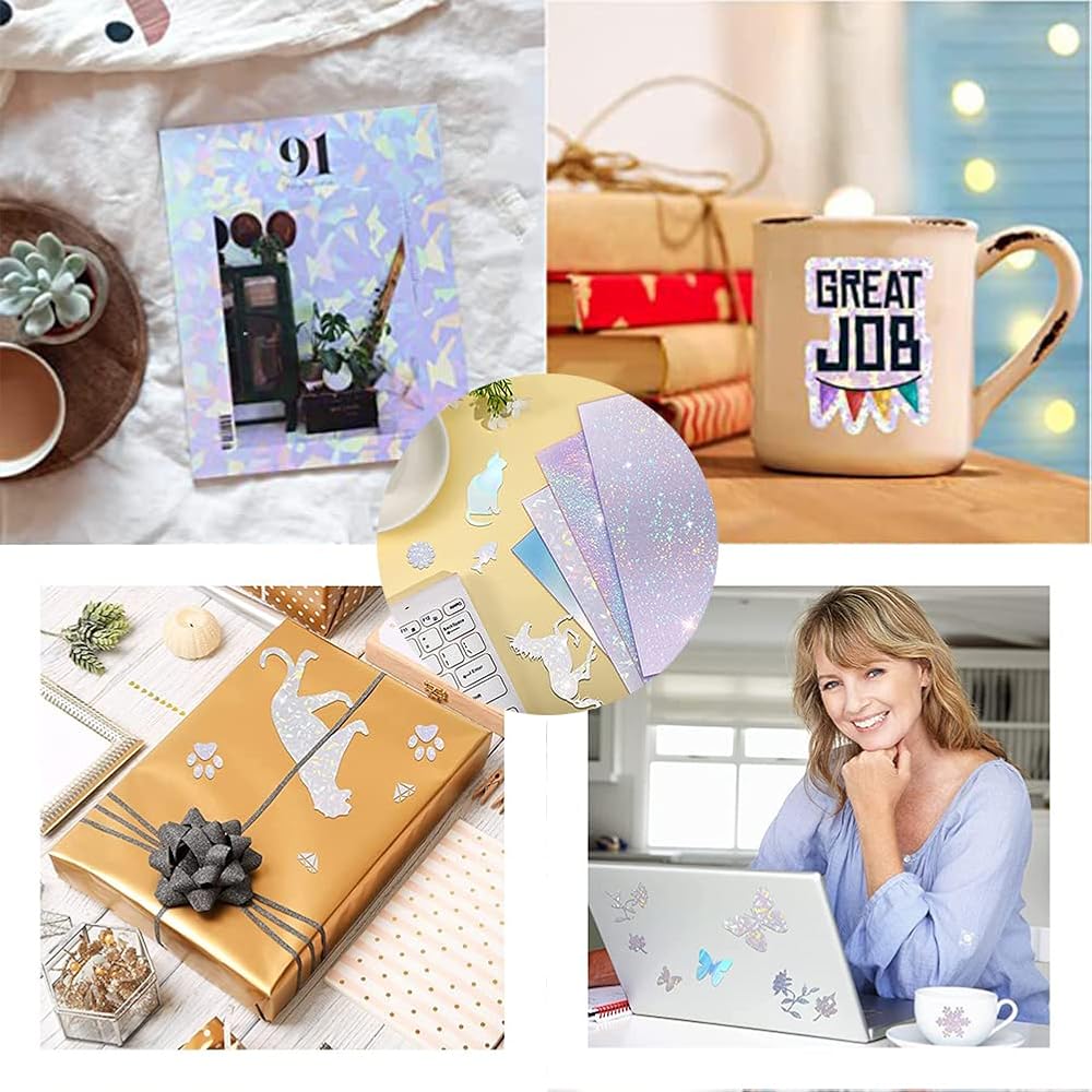 【Wide range of uses】this holographic transparent sticker paper set can be applied to home decorations, scrapbooking, mirrors, banners, stickers, decals, laptops, windows, lettering, graphics, signs and many other smooth flat dry surfaces