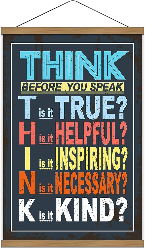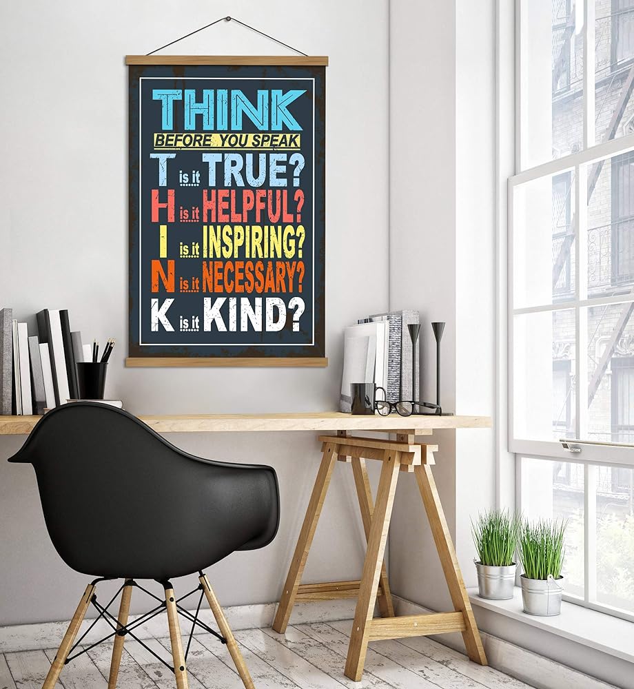 Classroom Poster Think Before You Speak Print Scroll Sign Educational Painting Motivational Home School Print Teaching Decor 15.7 x 27 inch (with Hanging Frame)