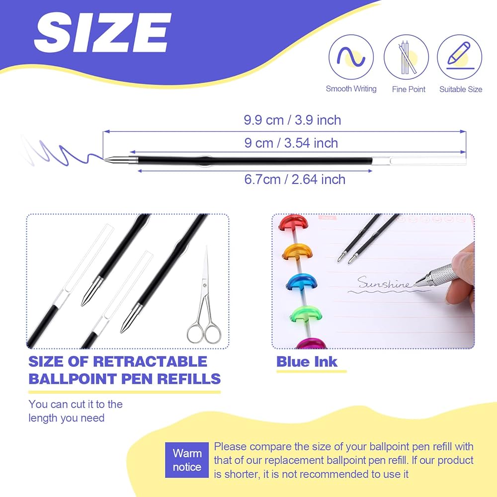 Size information: the total length of each ballpoint pen refills is 9.9 cm / 3.9 inches, the length of the cartridge body is 9 cm / 3.54 inch, and the length of the ink is approximately 6.7 cm / 2.64 inch; Please compare the size of your ballpoint pen refill with that of our replacement ballpoint pen refill. If our product is shorter, it is not recommended to use it