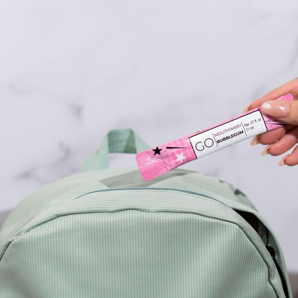 Packets Bubblegum Flavor - Adult and Kids Mouthwash with Fluoride Free Formula, Alcohol Free, Dye-Free Formula That Contains Xylitol - Perfect Bulk Mouthwash for Lunch Boxes and Travel