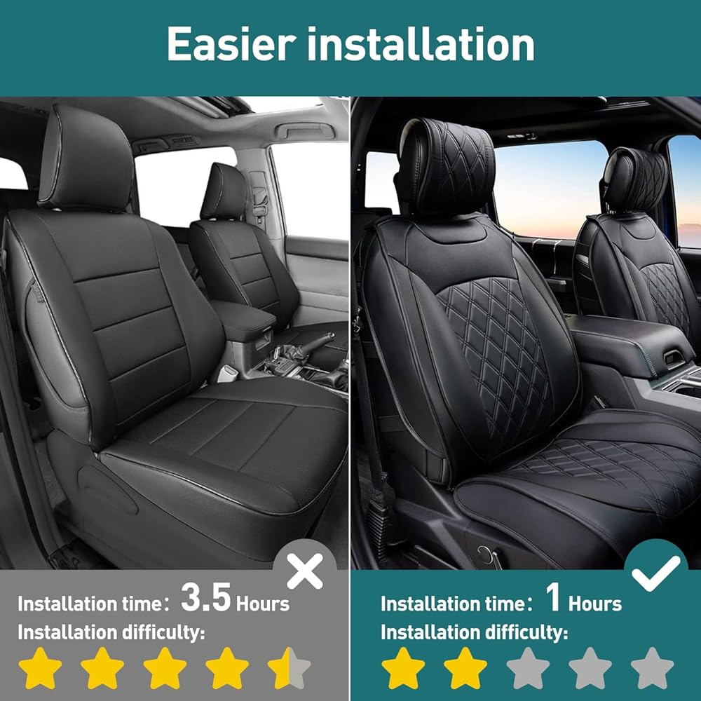 Seat covers are customized fit for Ford F150 2009 - 2024, fit for Ford F150 Super Crew Cab from 2009 to 2023 and fit for F150 XL XLT LARIAT KING RANCH PLATINUM LIMITED TREMOR RAPTOR 2009 - 2024 and fit for ford F250 F350 F450 Crew Cab from 2017 to 2024.