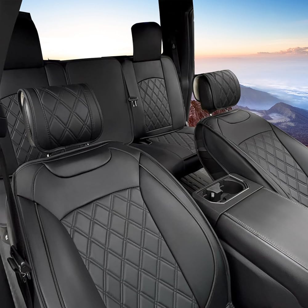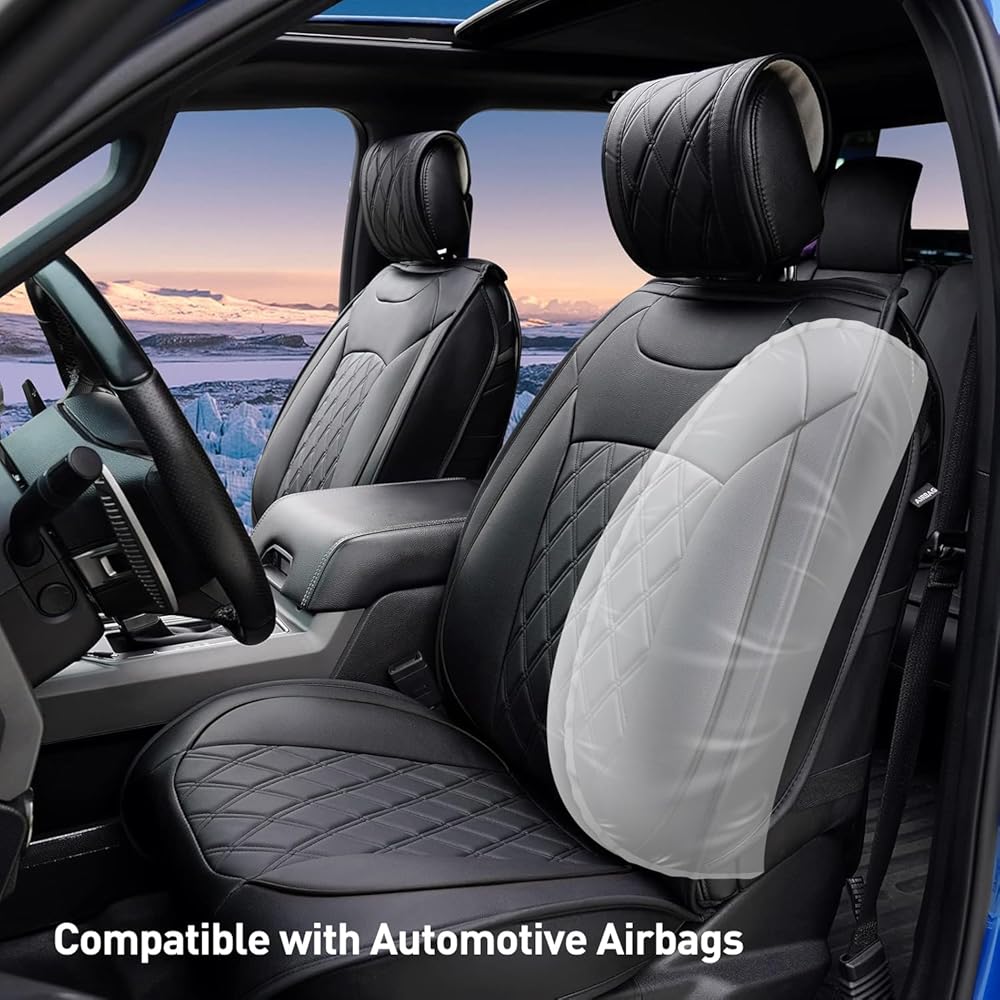 CarQiWireless Seat Covers for Ford F150 2025 2024-2009, Custom Fit for F250 F350 F450 Crew Cab 2017-2025 Pickup, Super Duty Waterproof Leather Truck Cushions Car Interior Accessories