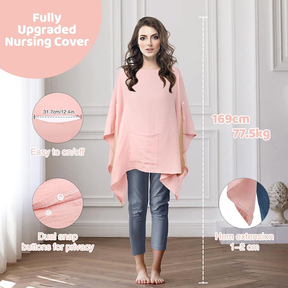 【Multi-Design】 MVUOCR breast feeding cover has a button design on both shoulders, you can adjust it flexibly as you like. The front pocket design can hold some diapers, wet tissues, and bottles, it will bring some conveniences for moms when going out.