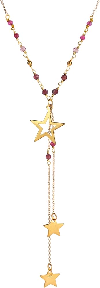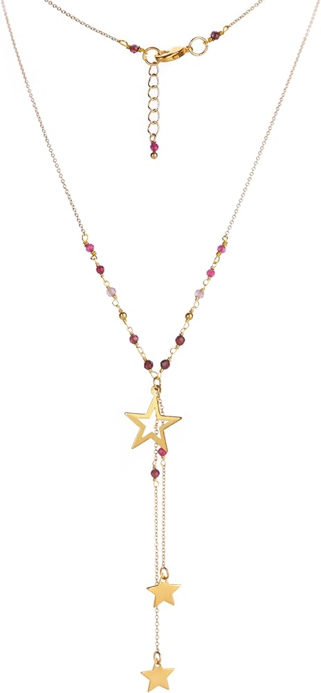 Lannclothesdesign Star Necklace – Brass Boho Necklace for Women with Star Pendant – Elegant and Dainty Star Dangle Necklace Boho Choker – Handmade Statement Necklace with Semi-Precious Stones