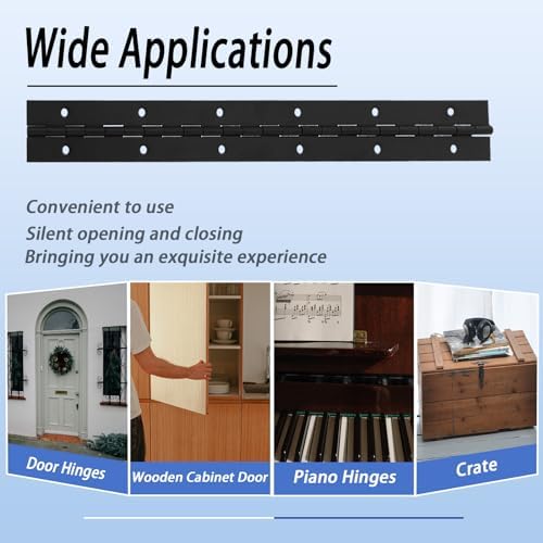 Versatile Piano Hinges:Black piano hinges are ideal for cabinet doors, bed frames, closet doors, tool boxes, wooden boxes, gift boxes, storage boxes, chair back hinges or any DIY woodworking project.
