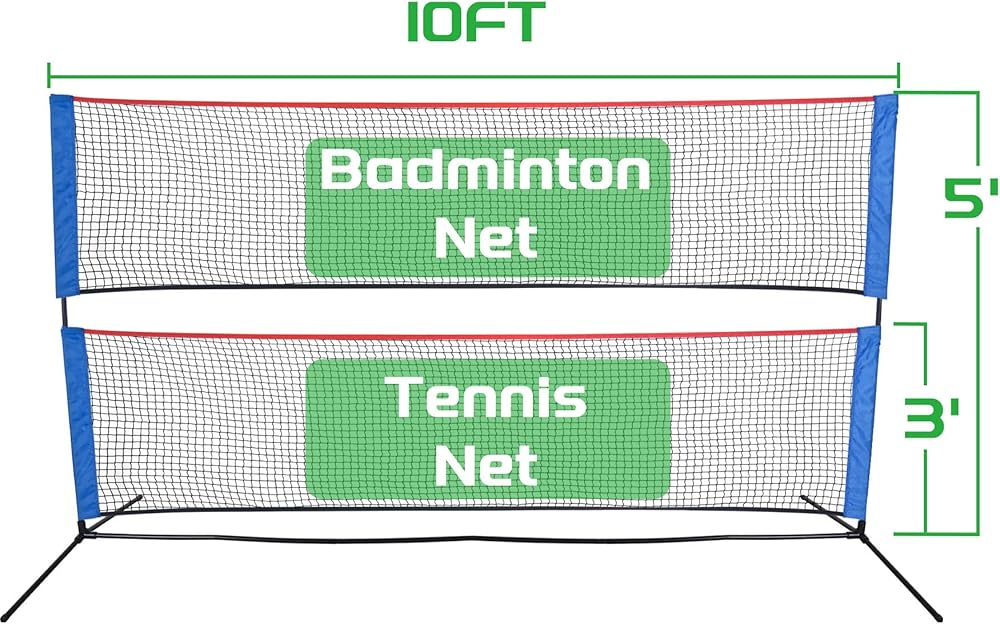 Height Adjustable: With a length of 10ft and an adjustable height of 3-5ft, this badminton net can accommodate various sports such as badminton, volleyball, and tennis. Whether you're a beginner or an experienced player, this net set allows you to customize the height according to your preference and skill level.