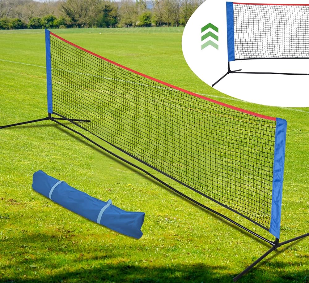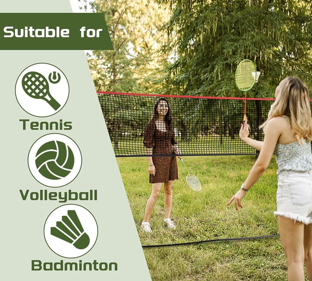 All-in-One Set: This badminton net set includes everything you need to start playing right away. With its complete set of accessories, including the net, stand, and poles, you don't have to worry about buying additional equipment. Whether you're a beginner or an experienced player, this versatile and convenient set is suitable for everyone who wants to enjoy their favorite sports anytime, anywhere.