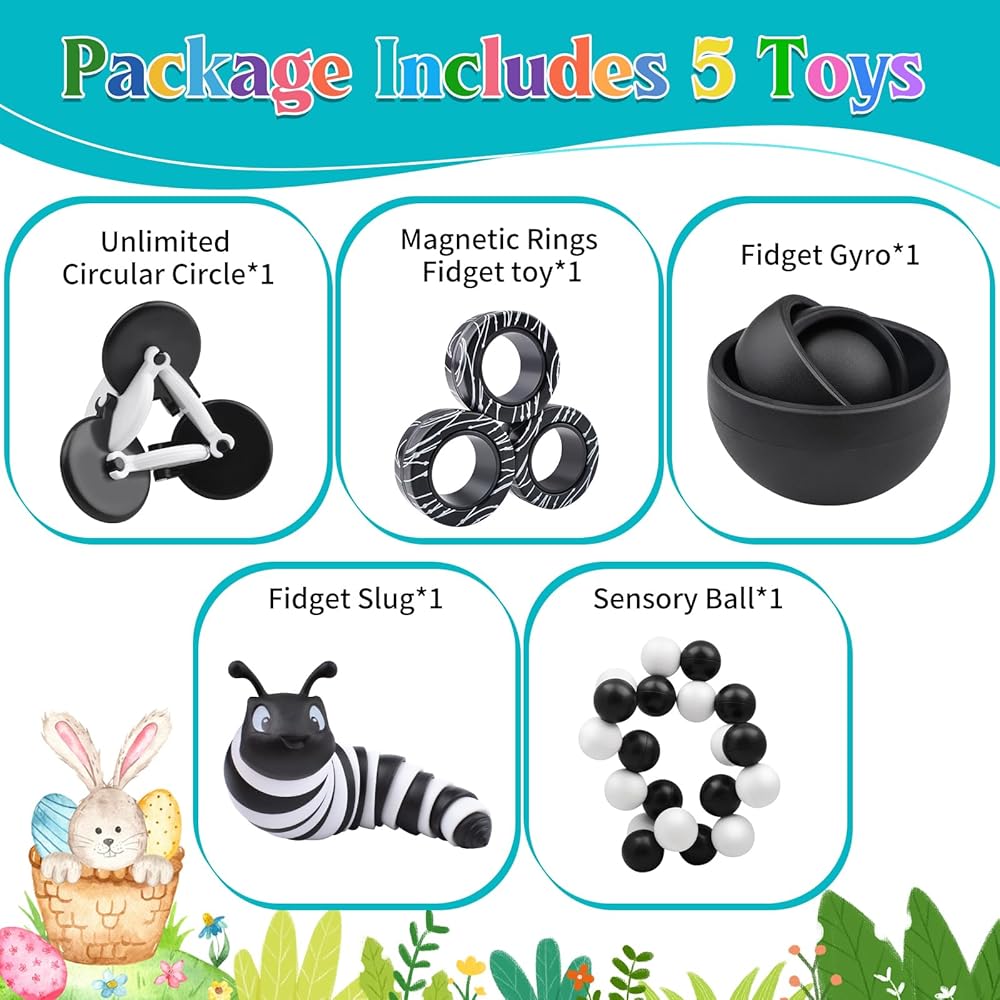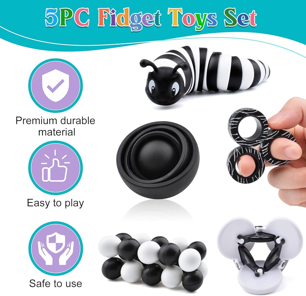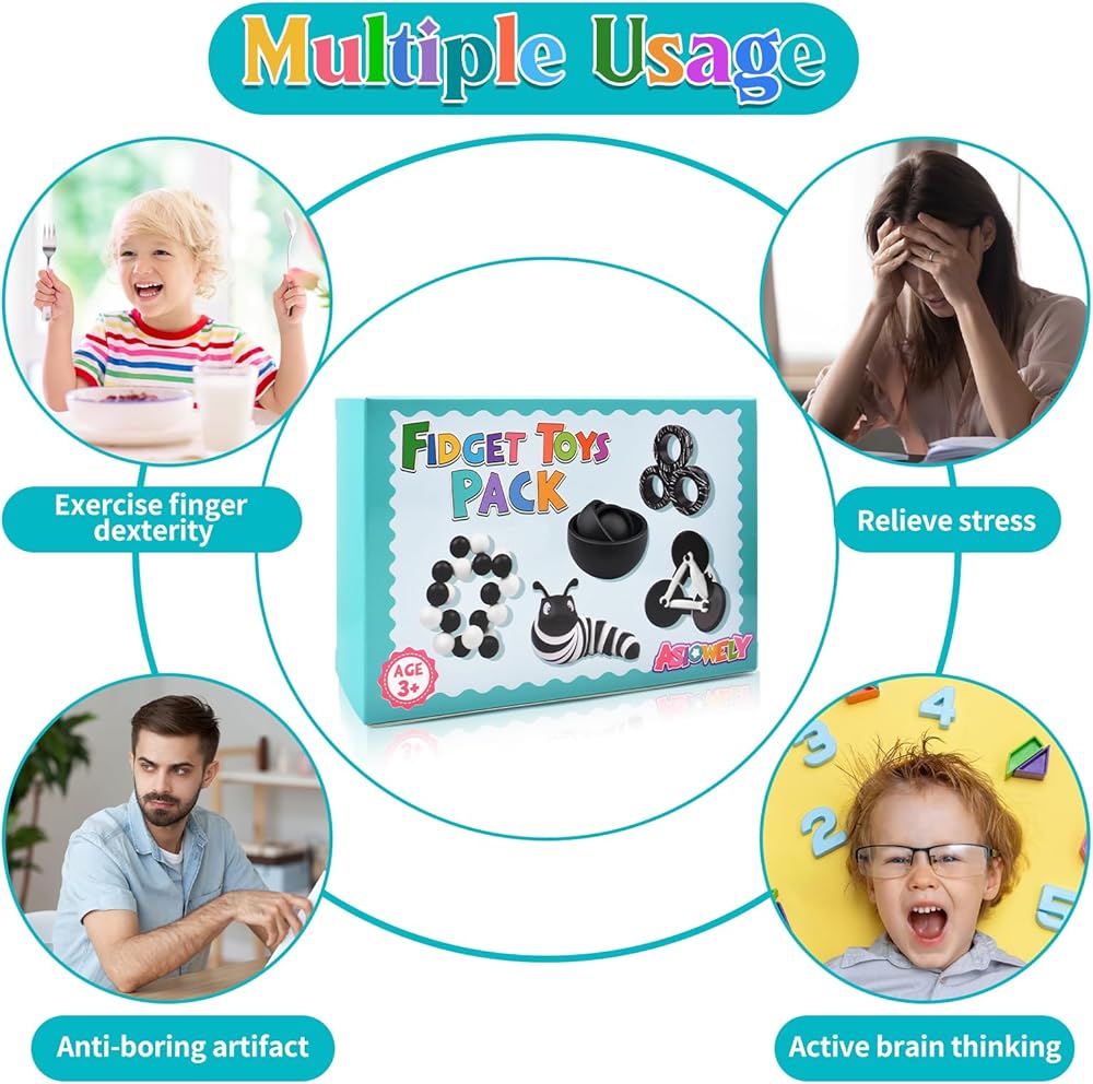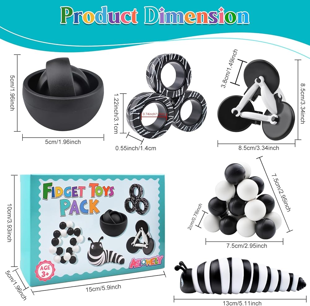 【Relieve Stress and Anxiety】Our black and white fidget toys kit can effectively relieve stress! Have fun for hours while practicing and improving finger flexibility. Keep your hands and minds busy during work. Great office desk fidgets for adults stress relief and Anti-anxiety.