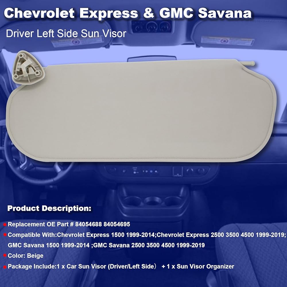 NHILES Driver Left Side Sun Visor Compatible with Chevrolet Express GMC Savana 1500 2500 3500 4500 1999-2019 Replaces# 84054688 84054695 Beige