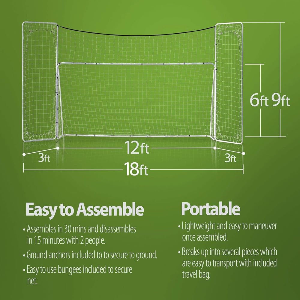 INCREDIBLE VALUE: This 12x6 foot soccer goal comes with a target and 3 feet of backstop protection in each direction. Would cost over $300 purchased individually!