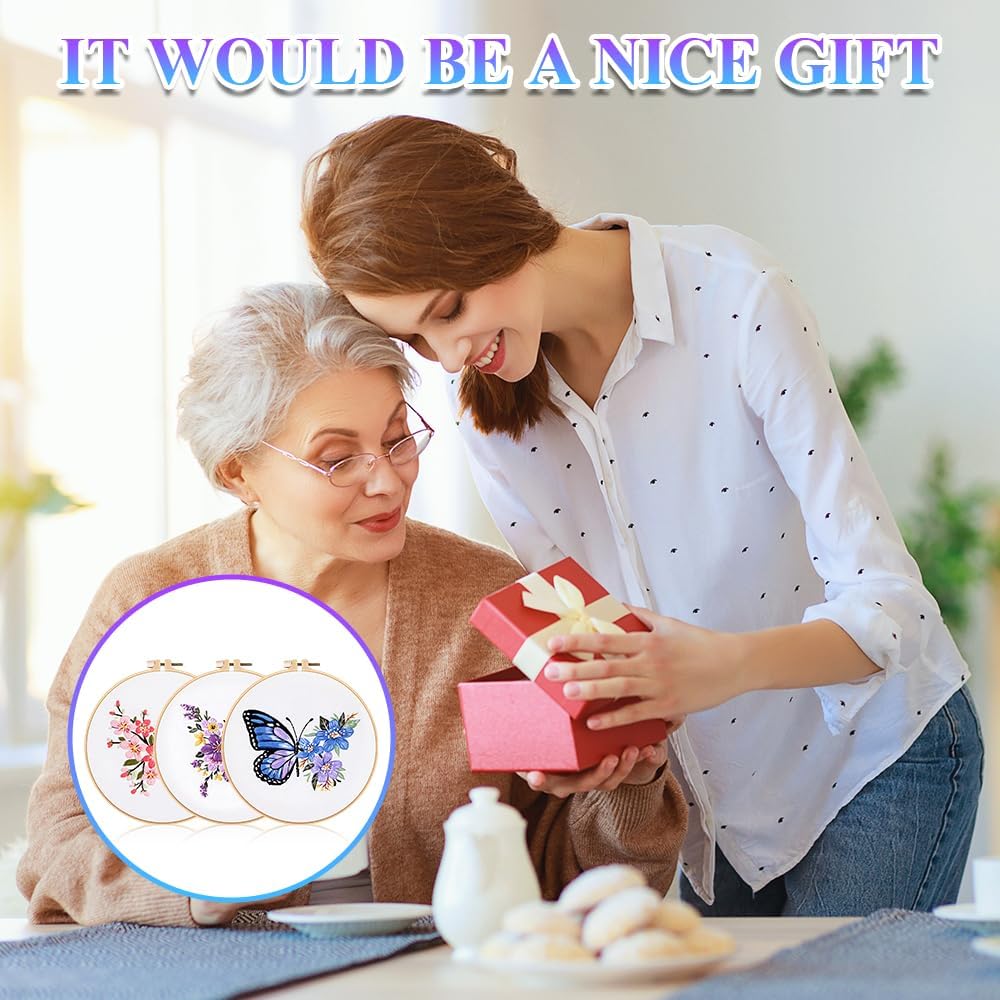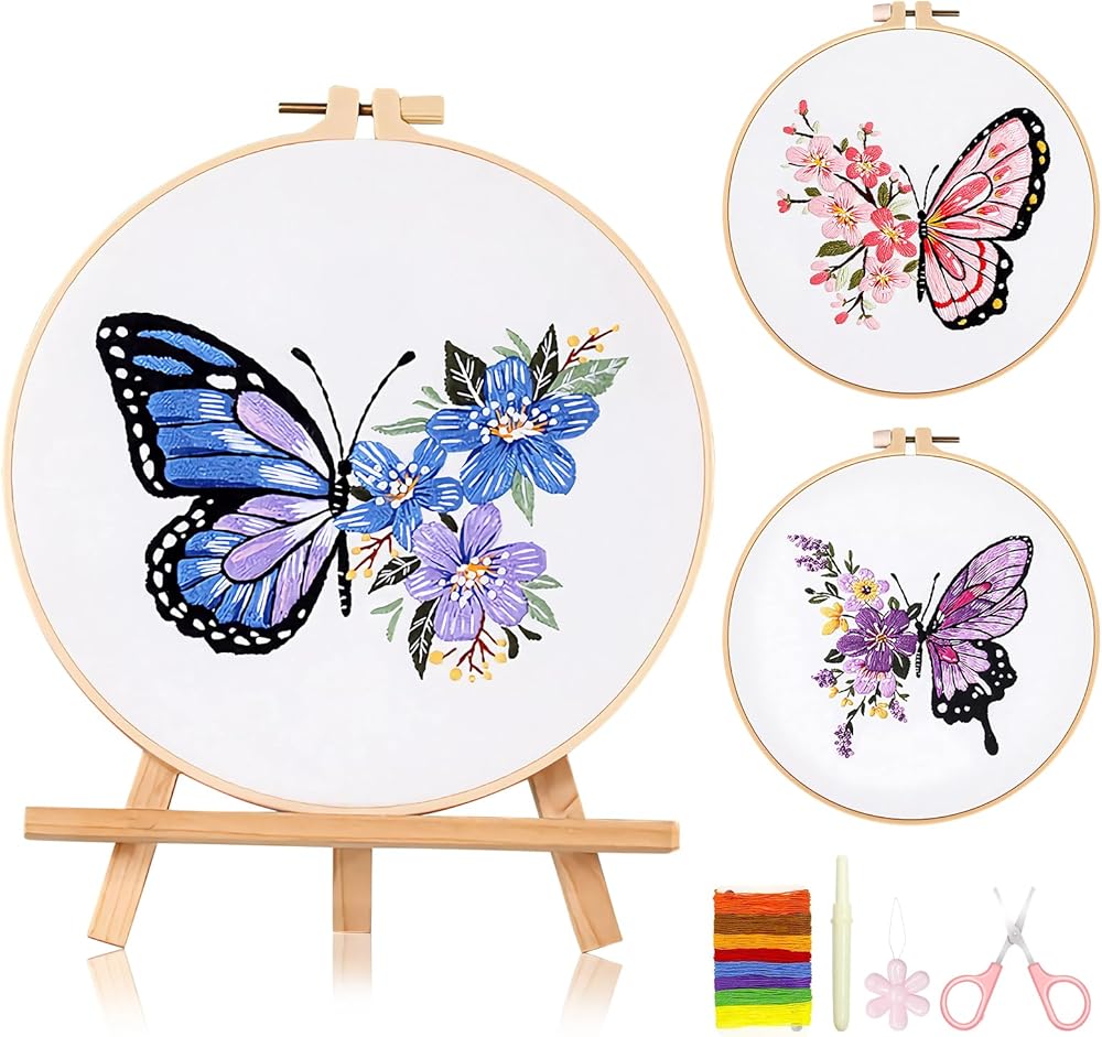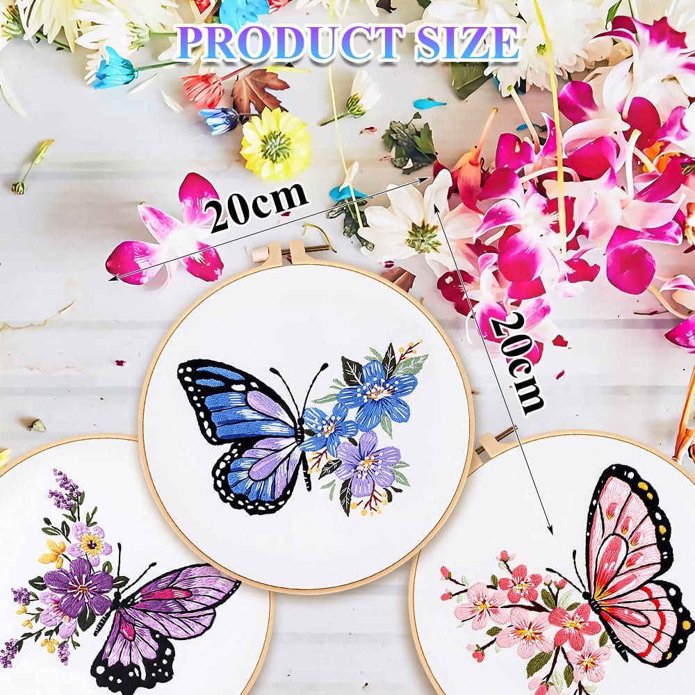 3 Sets Embroidery Stitch Practice kit,Flower Embroidery Kit for Beginners with Butterfly Pattern and Instructions,Needlepoint Kit for Craft Lover Hand Stitch with Embroidery Skill Tech