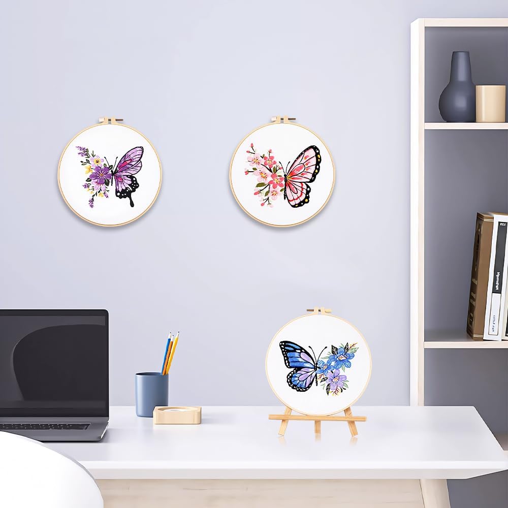 💗Popular Pattern Design: There are 3 beautiful butterfly patterns in this embroidery starter kit, hanging in the living room or bedroom, as an interior decoration. Or embroider it in to a pillowcases, towels, backpack, dresses is a great choice.