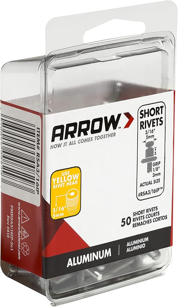 CHOOSE THE RIGHT RIVETER: Arrow 3/16-inch Aluminum blind rivets work great with most rivet tools including manual, electric, and pneumatic models; Compatible Arrow tools include RH200S, RHT300, and RL100S