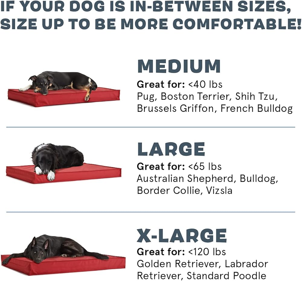 Perfect Size for Your Pup - BarkBox large platform dog bed is 35” x 22” x 3" and comfortably fits breeds like Basset Hound, Australian Shepard, Bulldog, and other similarly sized dogs up to 65 lbs.