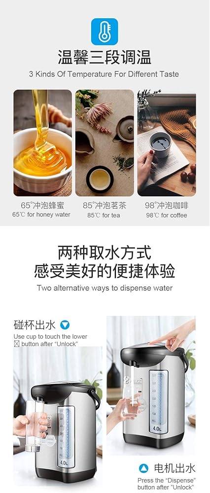 Soft-touch & cup-switch electric dispensing system; Easy-to-read large window water level gauge