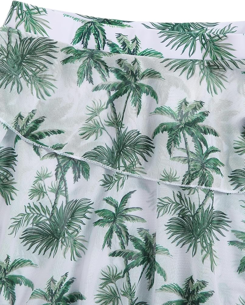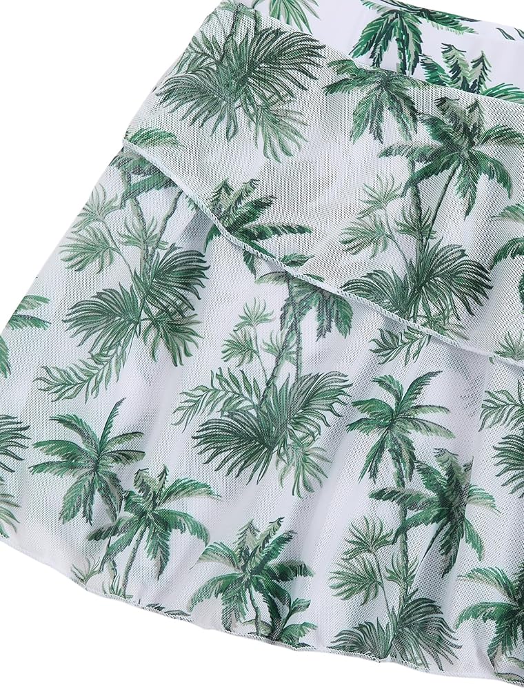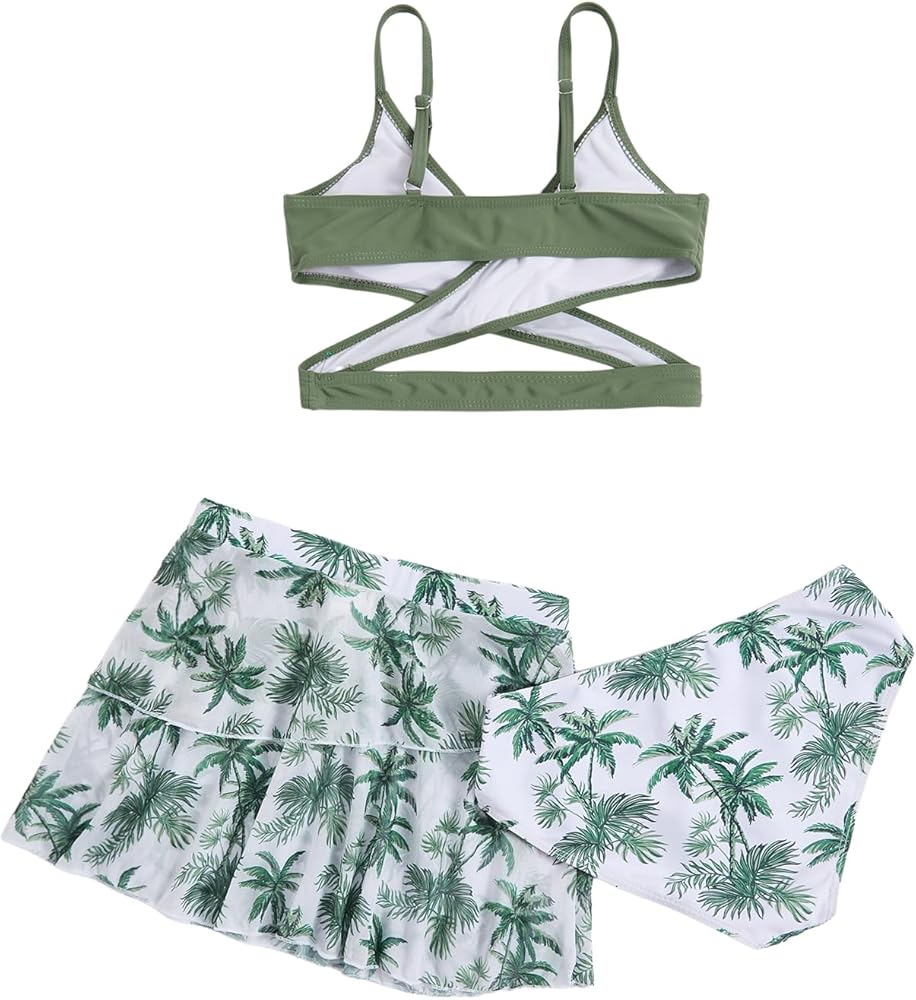 Milumia Girl's 3 Pieces Bikini Set Tropical Print Criss Cross Wrap Bathing Suit with Beach Skirt