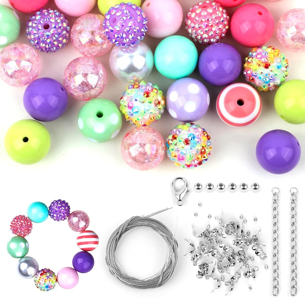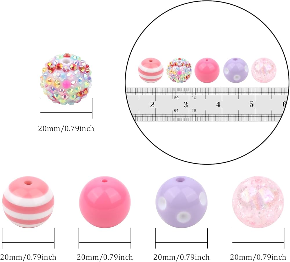 😊【Various Styles of Bubblegum Beads】- With a diameter of 20mm, these gumball beads are larger than your average bead, making them eye-catching and unique. Package includes bubble gum beads in various styles such as acrylic beads, crystal beads, glass beads, pearl beads, and rhinestone beads, you're sure to find the perfect beads for your project.