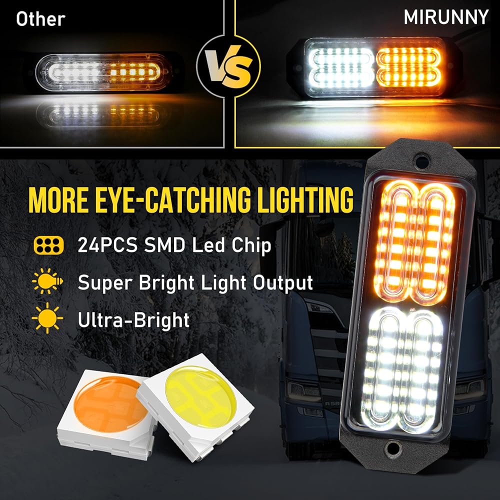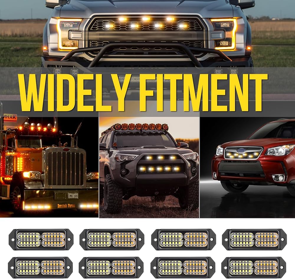 Led Grille Strobe Lights White Amber with Switch, 24-Led Emergency Warning Light Bar Universal Surface Mount, 20 Flashing Mode, for Off Road Vehicle ATVs Truck, 8PC Pack