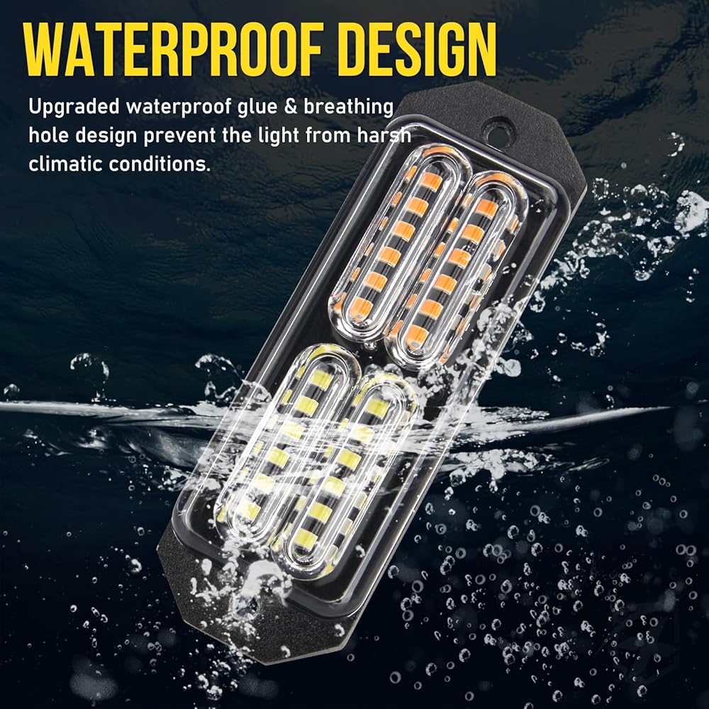 ※ Newest Waterproof Design White Amber Strobe Lights ※ Waterproof apron and breathing hole design on the back, rather than other no apron emergency strobe lights, make the lifespan for this amber strobe lights longer.