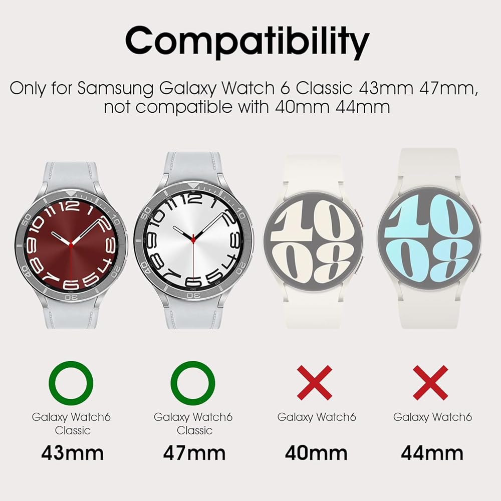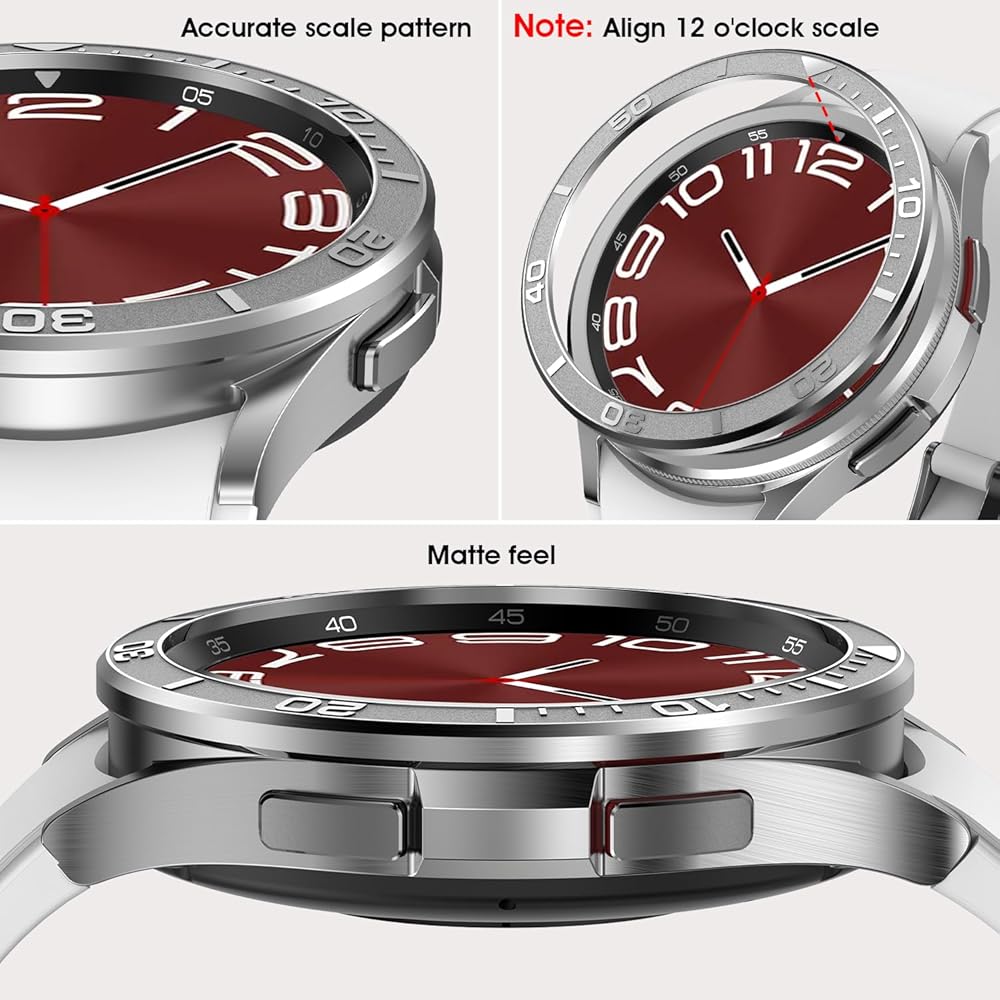 - 🚴 Enhance the style of your Samsung Galaxy Watch 6 Classic (43mm/47mm) with this stylish, stainless steel bezel ring.