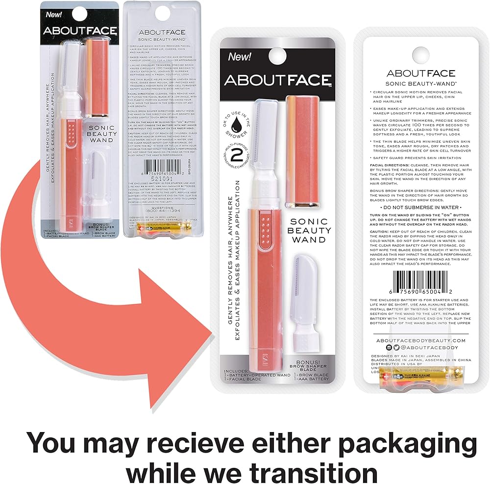 عصا التجميل كاي أباوت فيس سونيك مع محدد الحواجب الإضافي؛ مزيل شعر الوجه الذي يعمل بالبطارية؛ مزيل شعر الوجه والذقن والشفاه، أداة إزالة شعر الوجه للنساء، ماكينة إزالة الشعر للرجال والنساء (عبوة من قطعتين)