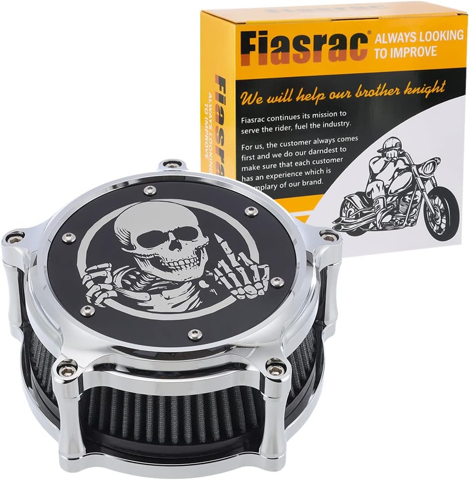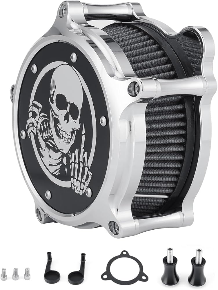 Material: CNC machined from high quality aluminum housing, with high performance bolt-in part . with the detachable skull logo on the air filter cleaner.